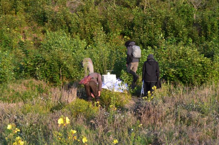 We stelden 9 bakken op doorheen het gebied maar nu iets meer aan de kant van de Hoge Blekker. Deze berg zand zorgde wel voor windstillere momenten tijdens de nacht.