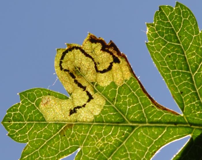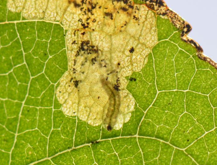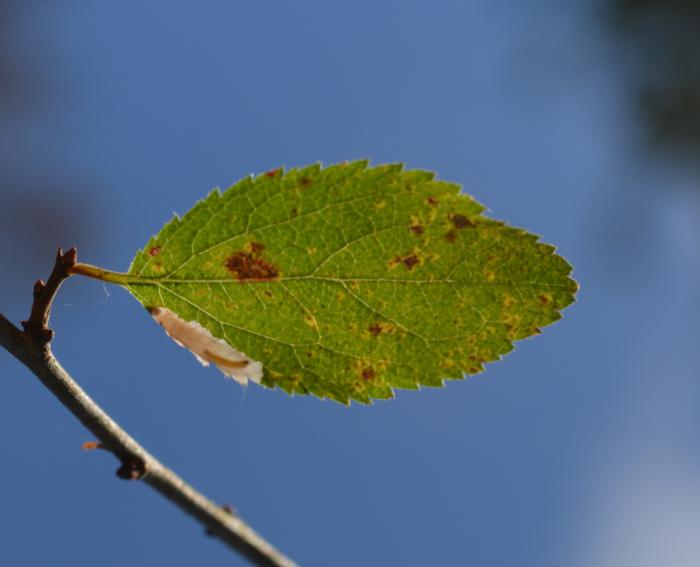 2x Phyllonorycter corylifoliella (vruchtboomvouwmot) op Pyrus pyraster (wilde peer)
