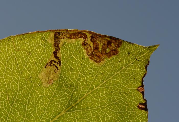 15x Phyllocnistis unipunctella (eenstipslakkenspoormot) op Populus × canescens (grauwe abeel)