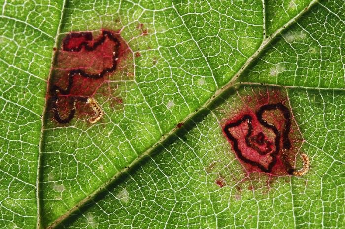 3x Bucculatrix ulmella (eikenooglapmot) op Quercus robur (zomereik)