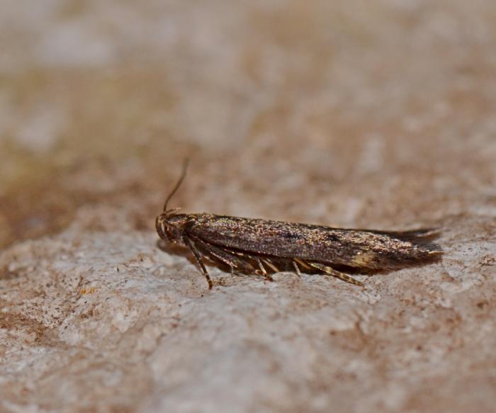 1 rups van Diurnea fagella (voorjaarskortvleugelmot)