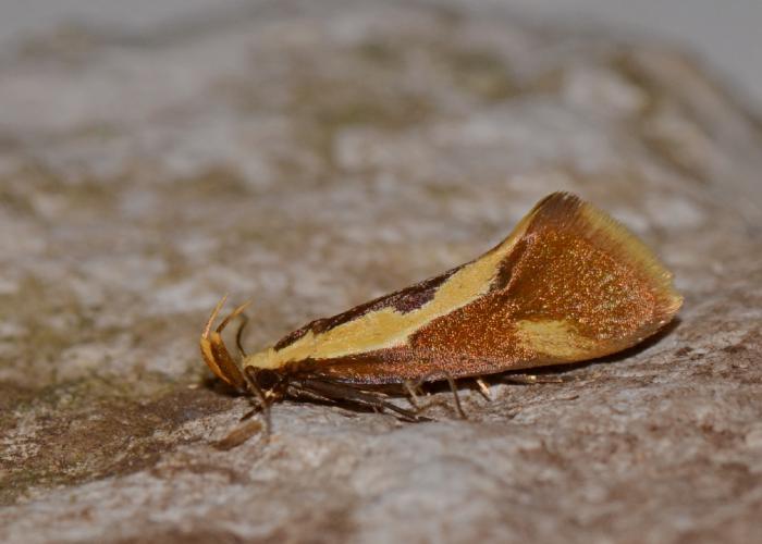 2x Cedestis subfasciella (donkere nassaubandmot)