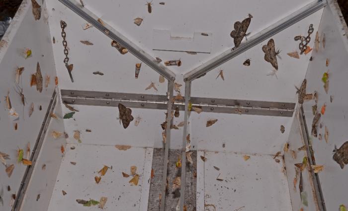 Stop van de nachtvangst om 05u00 bij een temperatuur tussen 10 en 14 °C, afhankelijk van waar de lichtvallen stonden.