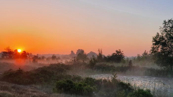 We hadden goed weer maar het was onbewolkt dus dit staat meestal garant voor een frisse nacht. De maan die aanwezig was zakte snel terug onder de horizon waardoor dit storend element weg was. De koude was ook aanwezig en er ontstond een beetje mist boven de heidevelden.