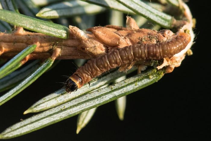 2x Pseudohermenias abietana (sparrenbladroller)